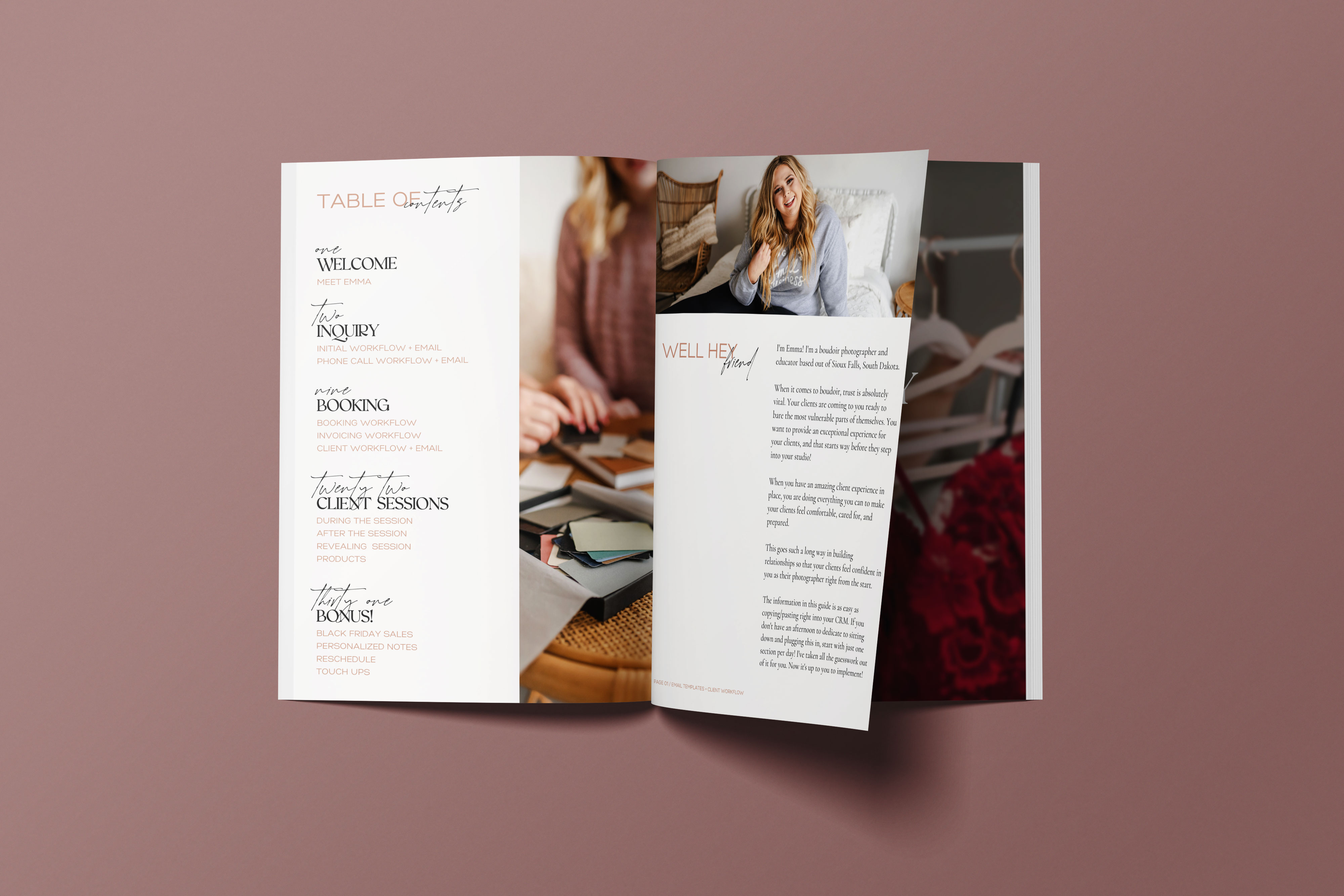This guide gives you access to 38 pages filled with workflows and templates needed to simply copy/paste into your CRM so that you have a successful client experience without the work of creating it from scratch!